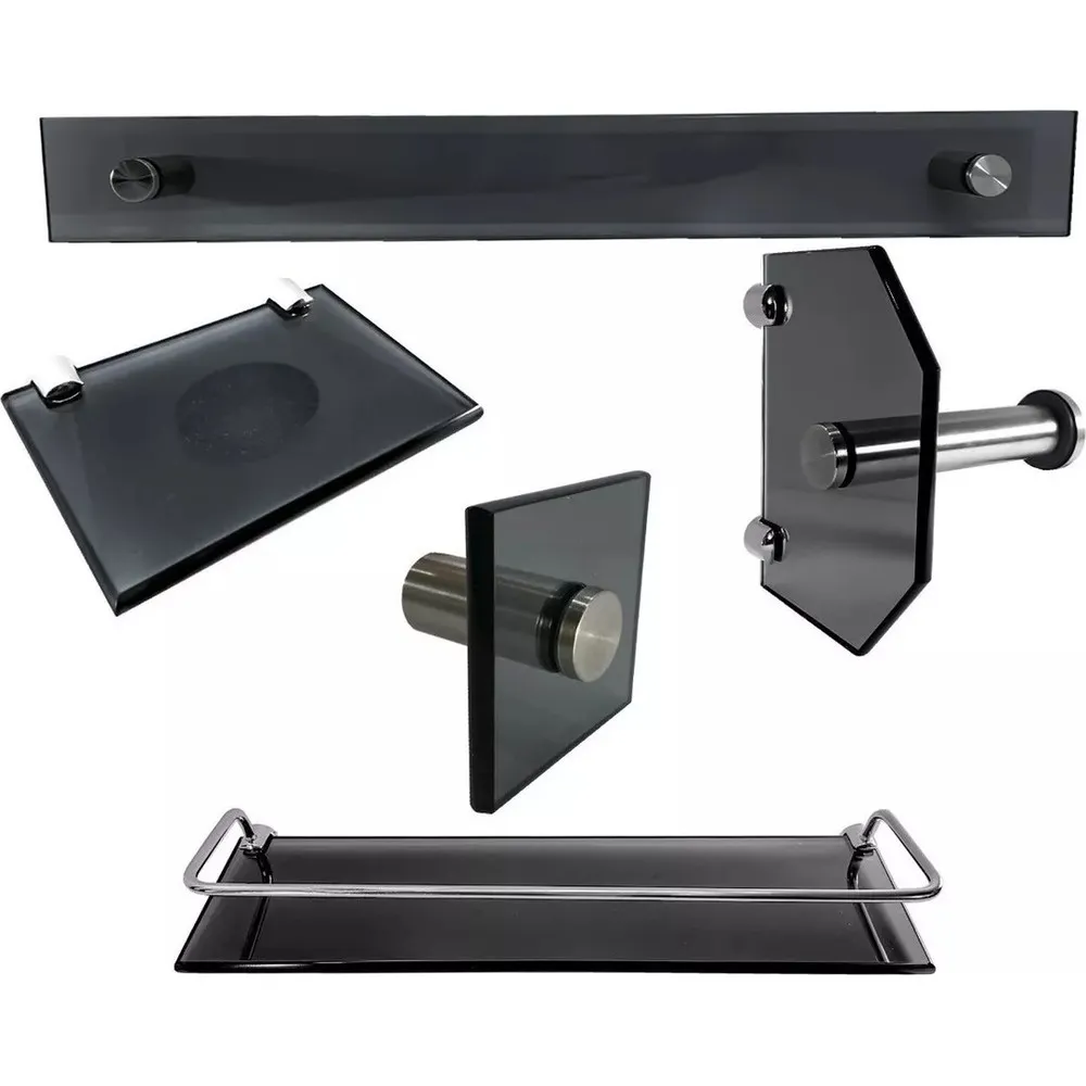 Kit Luxo Retangular Em Vidro Fumê 5 Pçs Vildrex